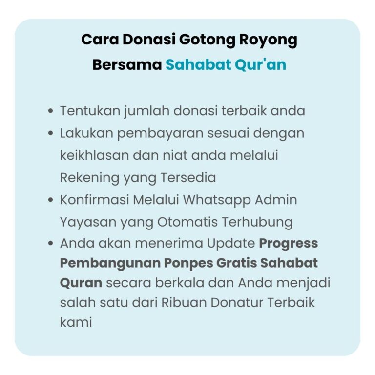 Maka Kami Mengajak Anda Sahabat Baik Untuk Ikut Program Gotong Royong Bangun Pondok Tahfidz Gratis, Karena Kami Yakin Dengan Gotong Royong Semua Pasti Lebih Mudah.